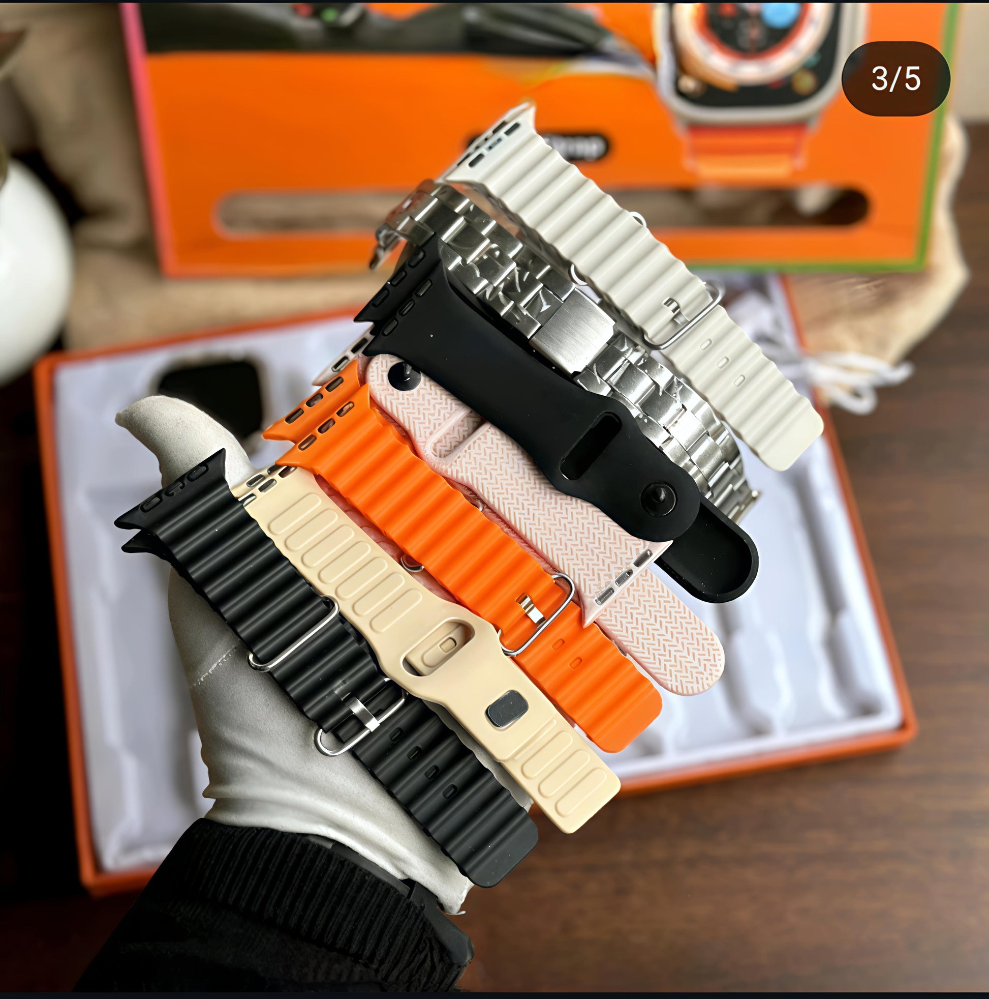 - 7-in-1 multifunction smartwatch with fitness tracking, heart rate monitoring, sports modes, notifications, waterproof design, long-lasting battery, premium orange style.